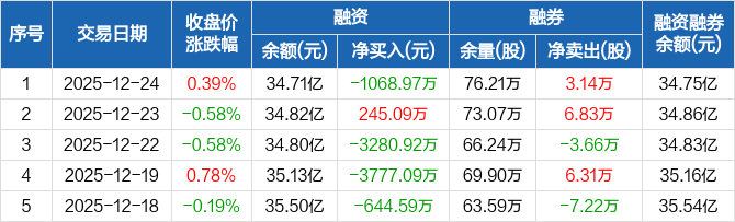 中国联通:融资净偿还1068.97万元,融资余额34.71亿元(12-24)