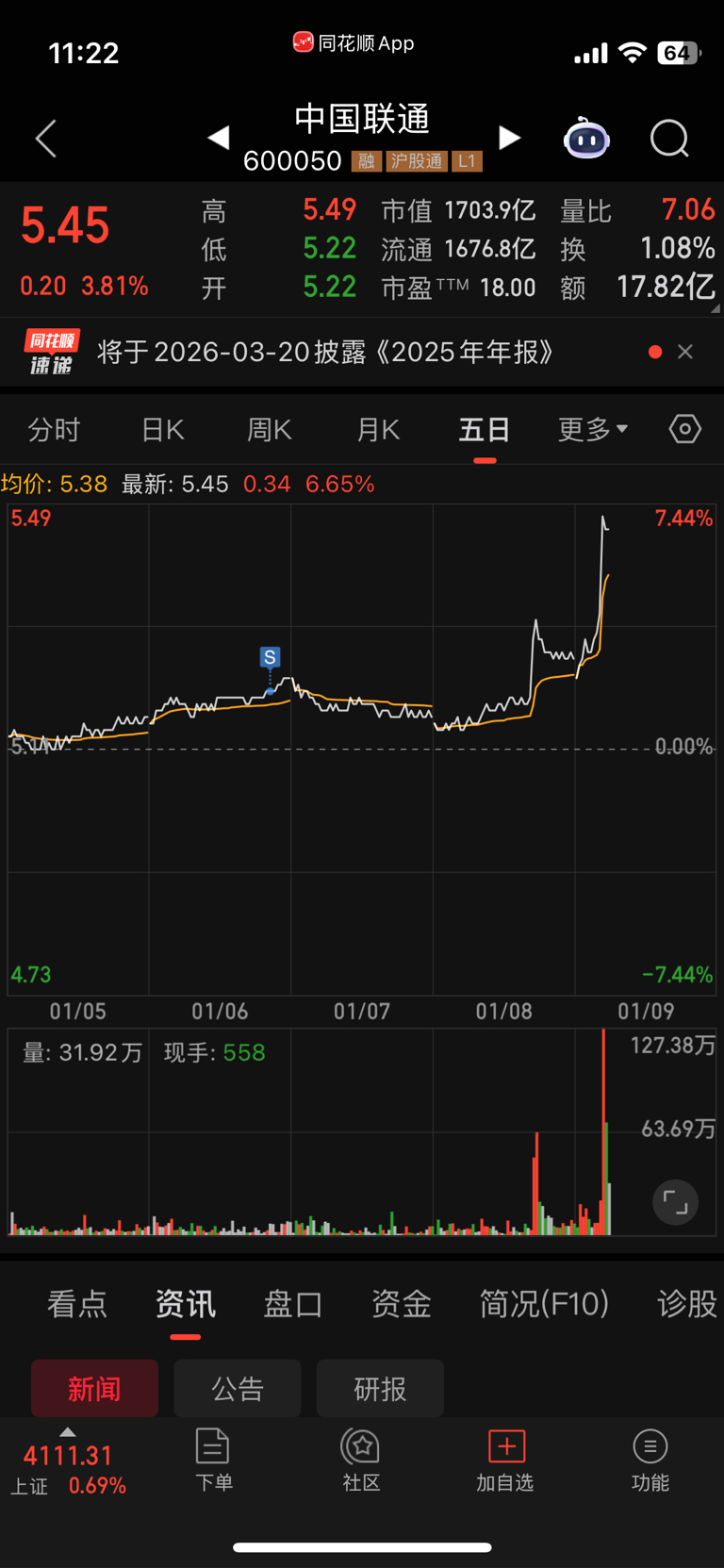 $中国联通(SH600050)$ 你就是在等我卖么……