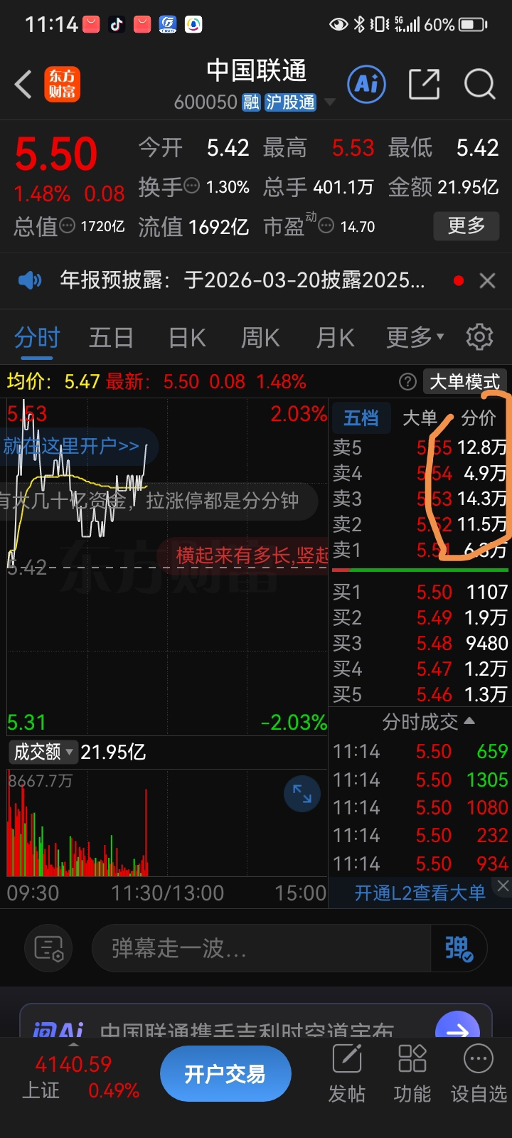 $中国联通(SH600050)$ 这50到55这50W大单吃掉必涨停
