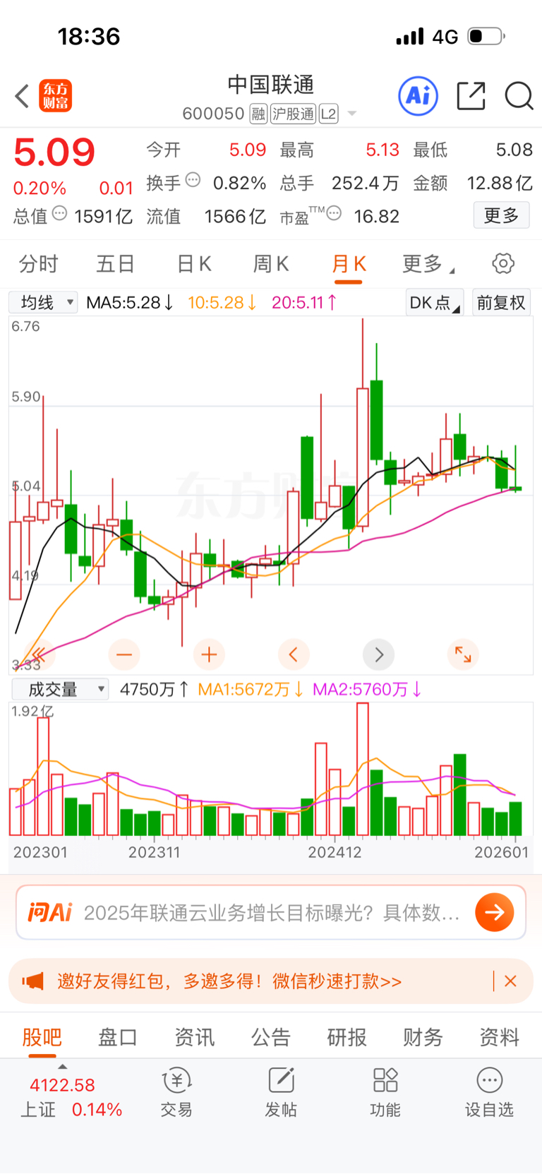 $中国联通(SH600050)$ 参考2024年初到年末,20个点稳定收益啊,今年到年底也是保守20个点啊