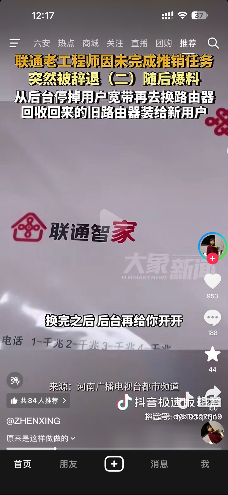 $中国联通(SH600050)$ 后天锁数据让用户换光猫在重新凯数据,不知道是不是真的,抖+有爆料了