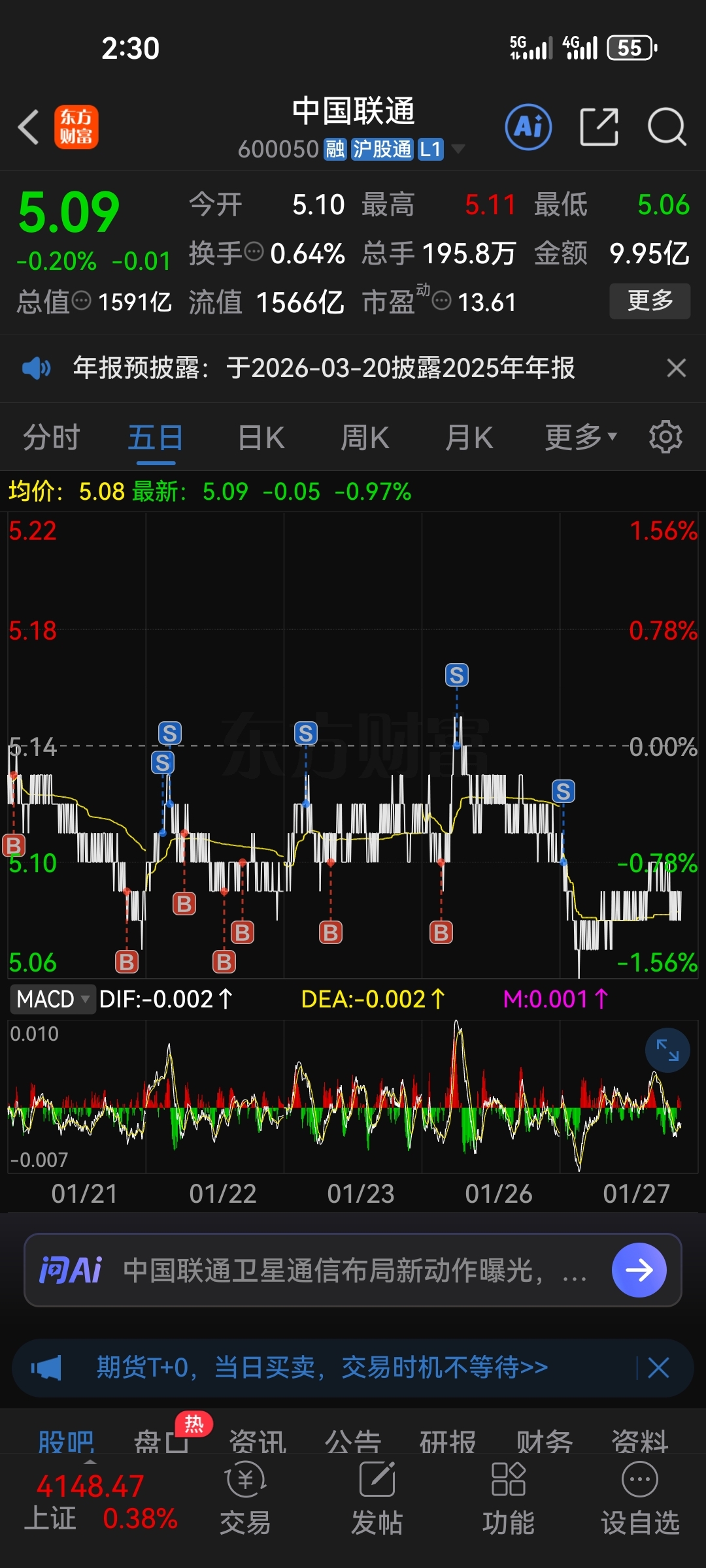 $中国联通(SH600050)$ #炒股日记# 又是下跌的亏钱的一天。