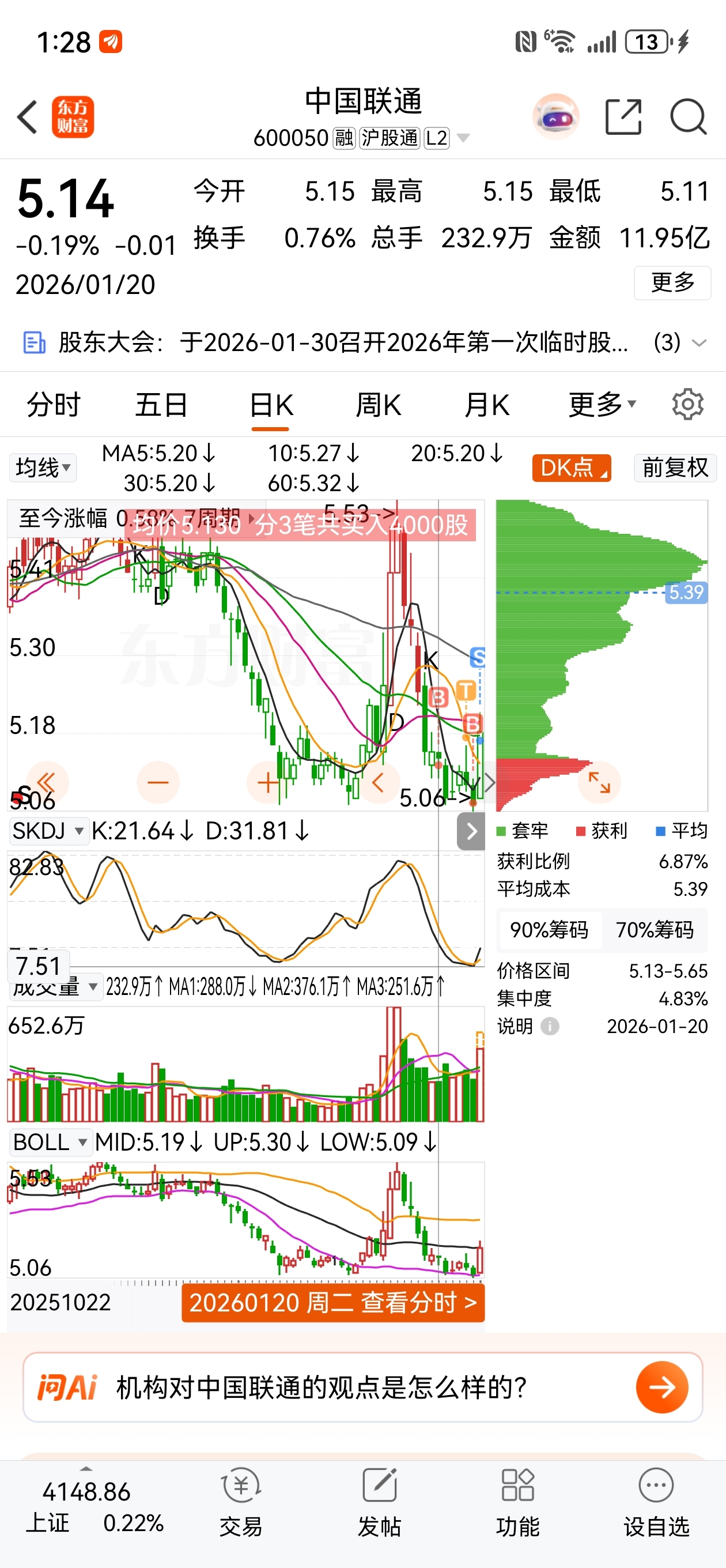 5.13建仓,目前5.055盈利中拉吧哥,拉了都给你,砸也行,砸再加
