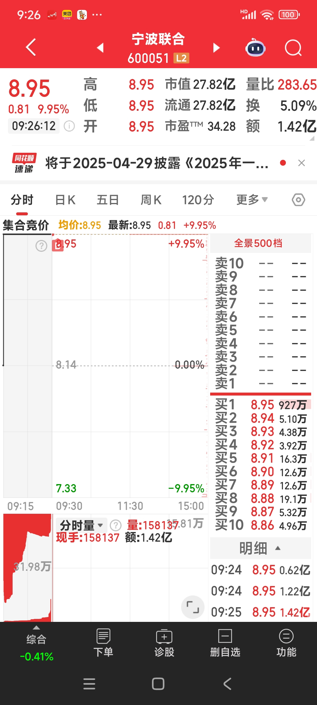 新开半仓宁波联合!看好今日晋级。明天卡位一字板华银电力!