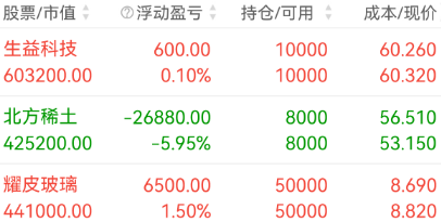 北方稀土:昨天早盘冲高回落,后续在区间进行震荡,目前已经是连续3天调整了,下方有10日线支撑,所以今天在看一天,如果在跌就只能割了。