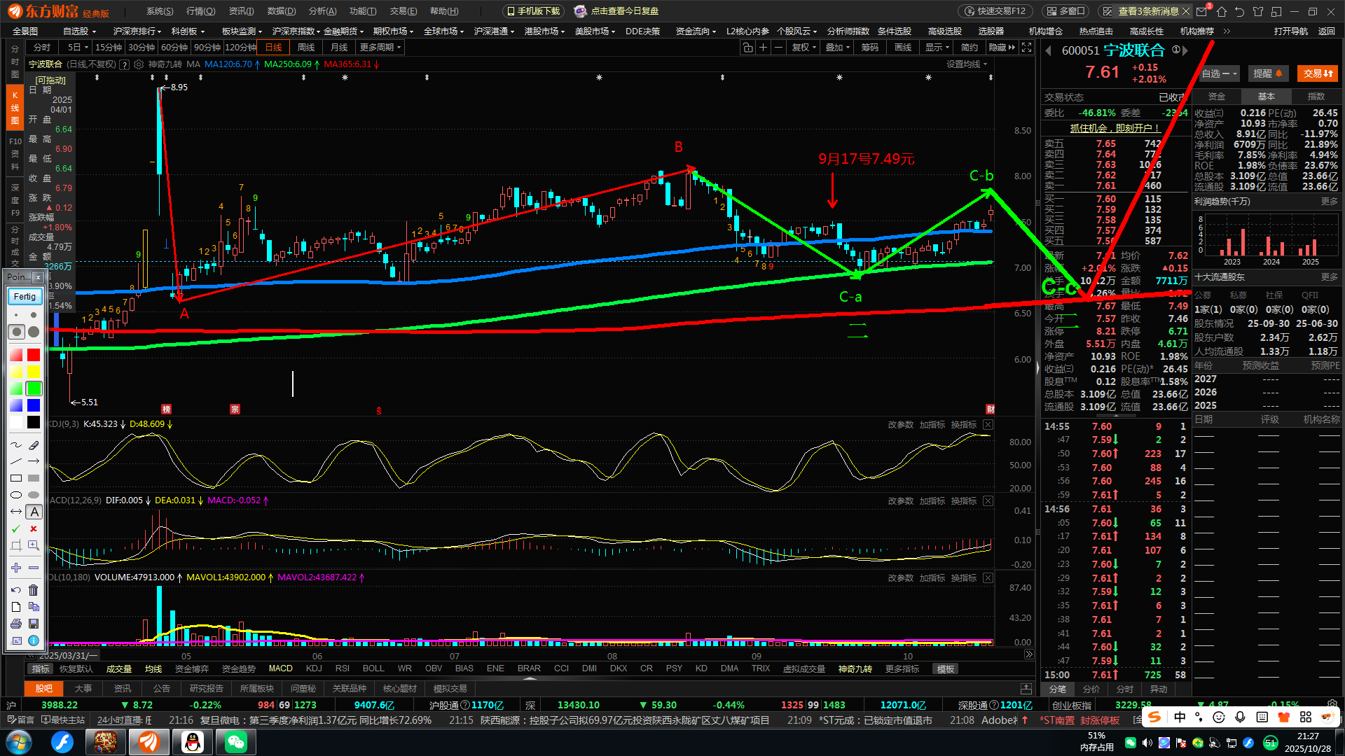 乐观走势.二浪在6.84元结束.开启向上走.还有一种走势不太乐观.二浪还没调整完