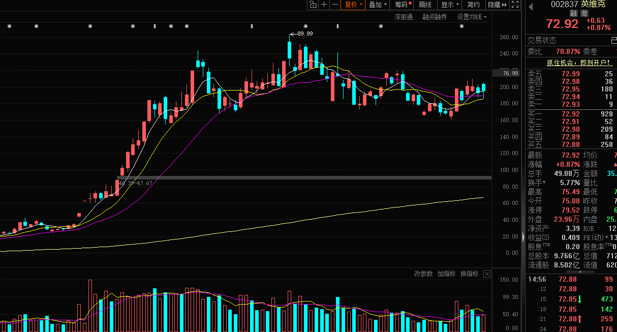 英维克002837:液冷概念,正常缩量调整,等反包修复就好了。