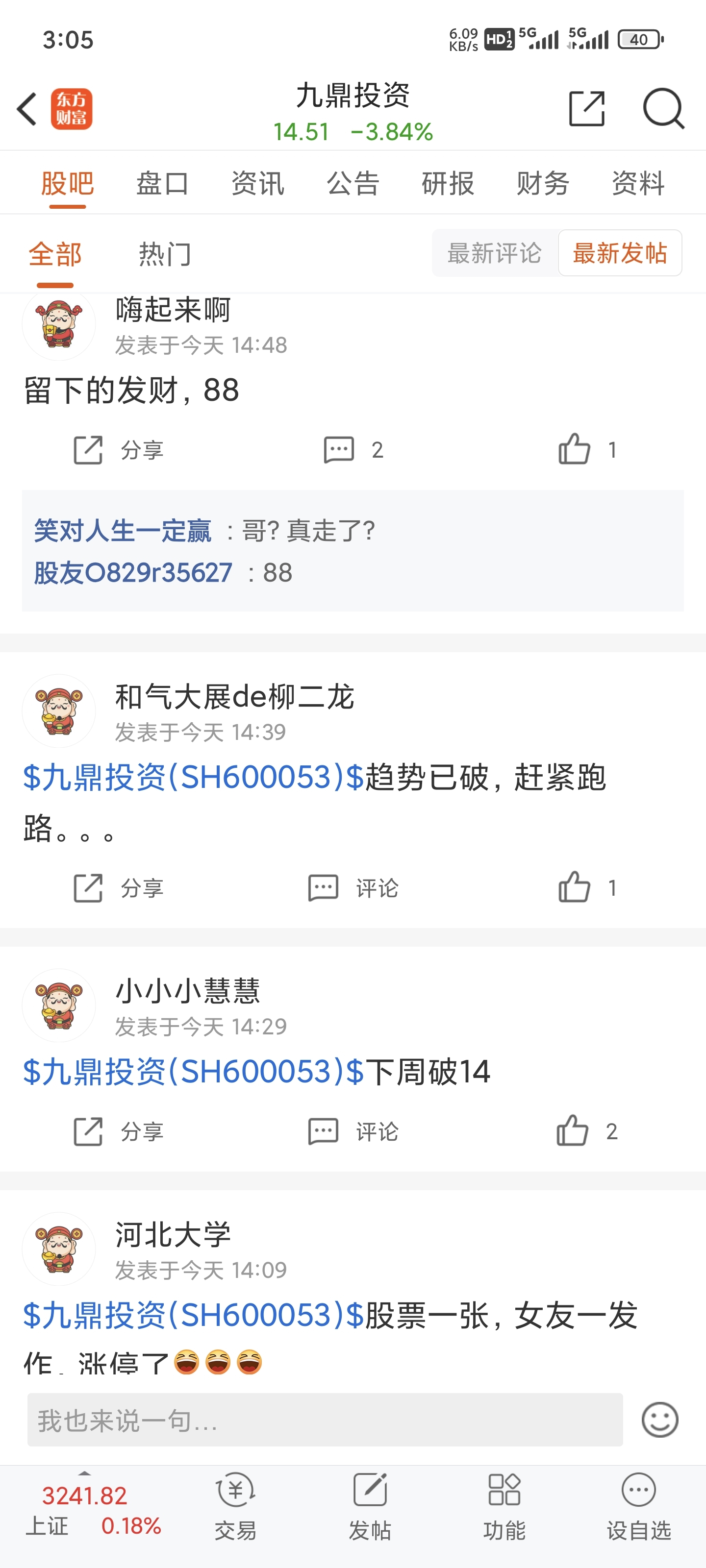 这个嗨哥大家千万相信,被他坑惨了。他说下午拉涨停,我中午借的钱下午开盘就全部加仓进去,结果一路下跌,我只能把原有的股票割肉了,导致我多亏了一个多点,下周一估计又要大跌。要不是今天ETF挣了点,最起码亏损百分之五以上。