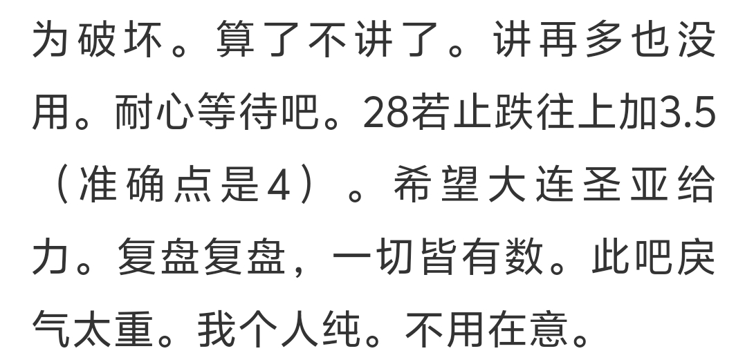 九鼎投资12.88进场。目标是17附近,回撤2.5,也就是当下的价格有作为盘面3买条件。我个人拿的是2买。以现在的角度去看4月27的立贴,29的的建仓。1买在11,2买是不是我的12.88。那么3买就是当下的15.77。但是我作为3买来考虑位置的12.88,虽然利润会少,但是安全性更高。利弊同在。青岛金王,贝因美,存在洗盘嫌疑,此处的洗盘手法简陋。人尽皆知的感觉。反而像是真洗。可能会走创新低拉新高的手法。一切的手法都是为了涨。以静制动是最为简单的。如果想波段操作也没什么问题。至于大连圣亚,就这样。答案简单,一切都在盘里。你信吗