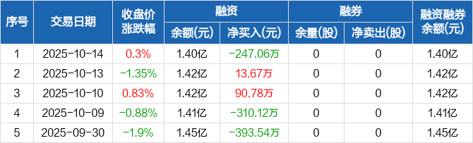 九鼎投资:融资净偿还247.06万元,融资余额1.4亿元(10-14)