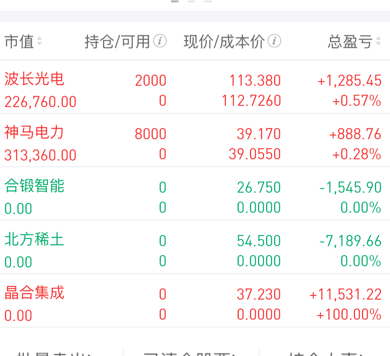 波长光电:本来预计也就到115附近,结果今天直接低开往下打压,所以等承接的时候做了一些。这里是区间震荡的下沿,加上今天没放量,安全边际应该不错。