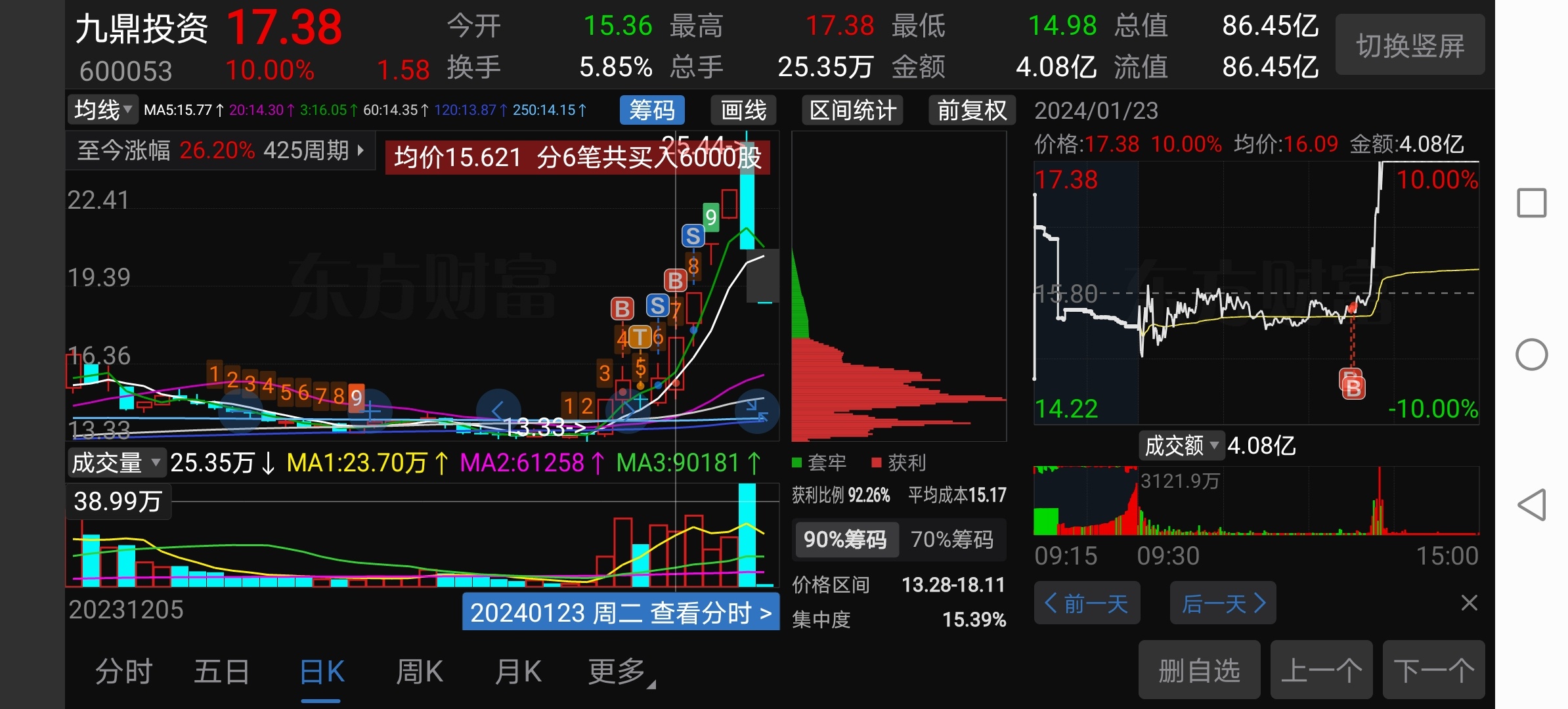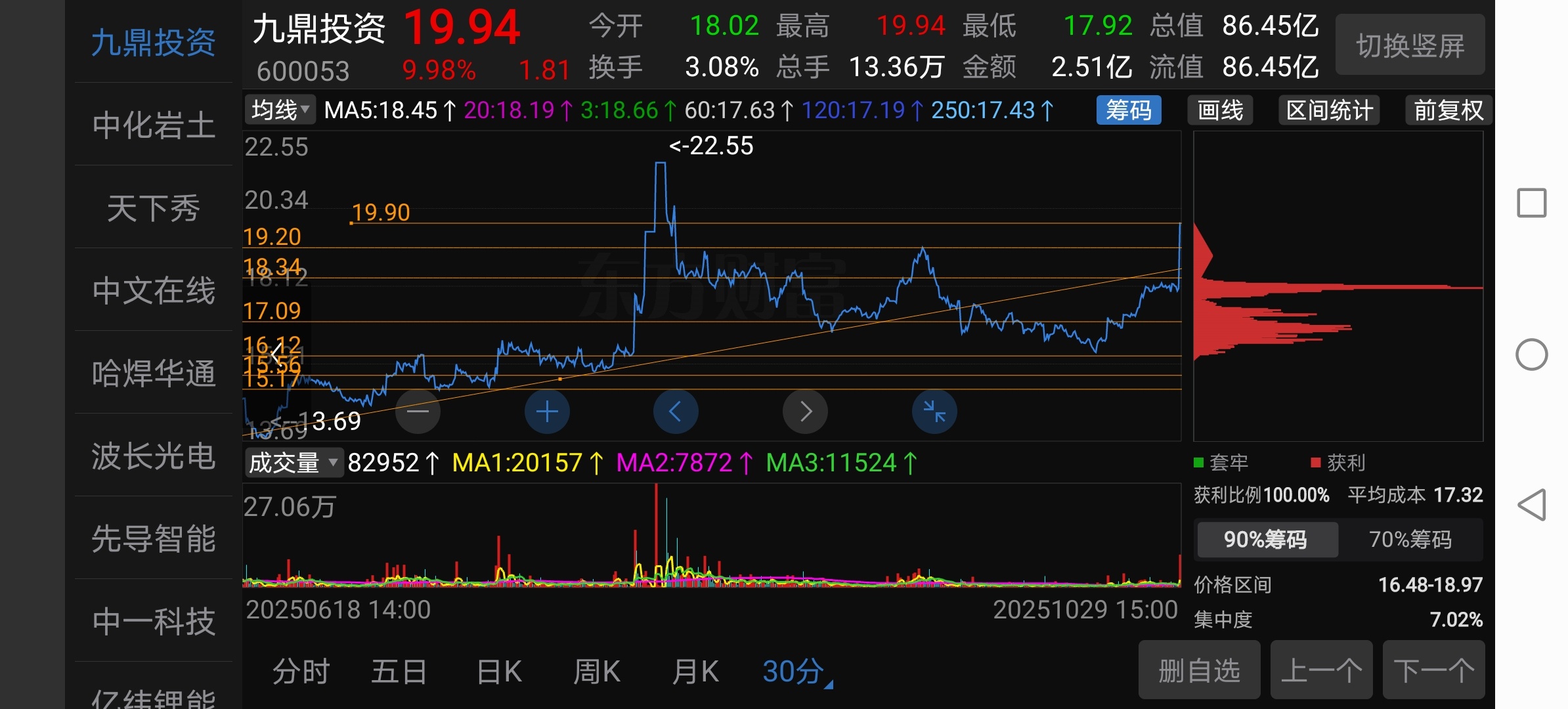 我估计是1字,万一平开,会有一个19.2的入场点。九鼎是比较难操作的票。谨慎追高。换手大于8-10就要减仓了。