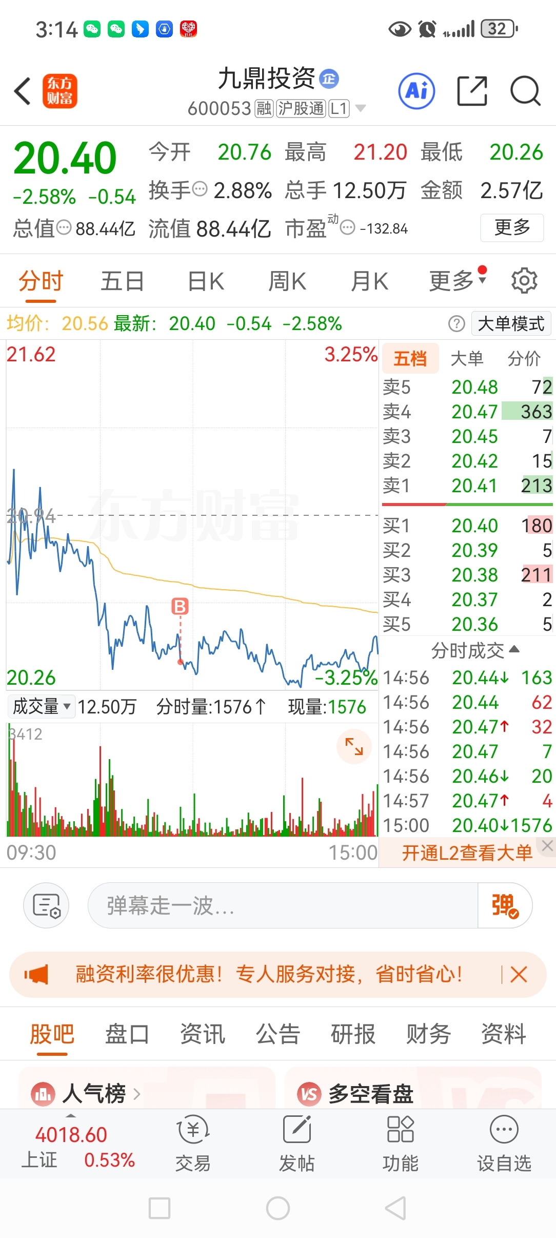 $九鼎投资(SH600053)$ 17没敢加仓,二十多加仓啦