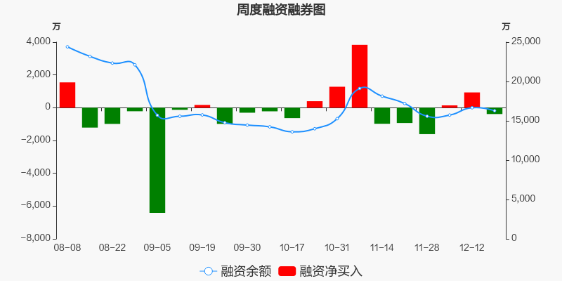 九鼎投资本周(2025/12/15-2025/12/19)累计跌幅达2%,截至12月19日最新股价报收19.11元。从增量上来看,12月15日至12月19日融资买入交易规模3007.53万元,融资偿还规模3393.06万元,期内融资净偿还385.54万元。从存量上来看,截止12月21日,九鼎投资融资融券余额1.63亿元,其中融资余额规模1.63亿元,融券余额规模0元。
