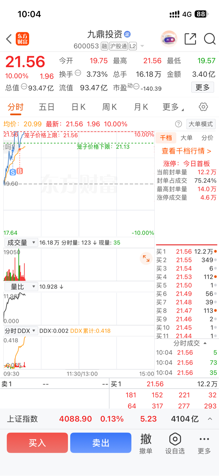 $九鼎投资(SH600053)$ 兄弟们 我买了一半回来 能行吗?