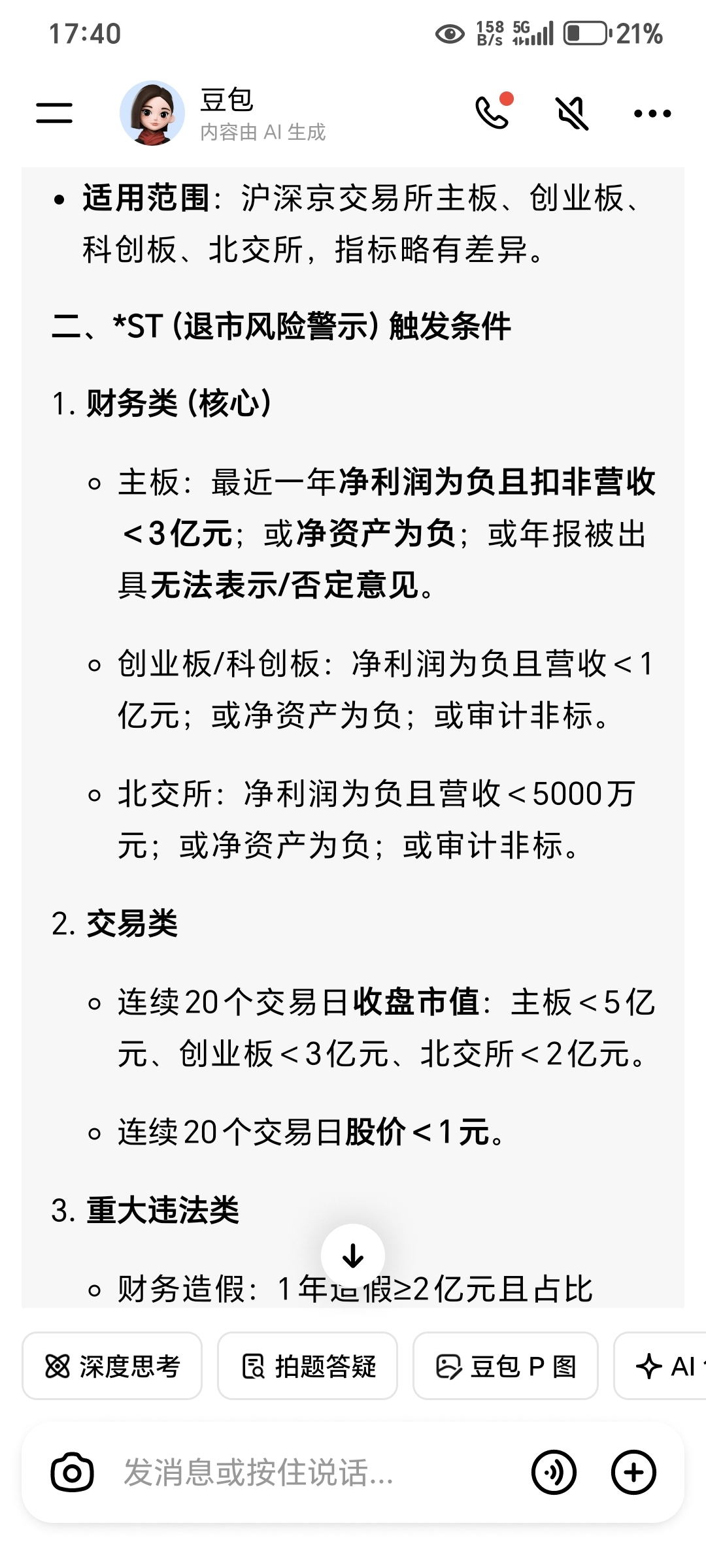 搞笑,还有2个自大狂信誓旦旦说营收小于1亿才会st,看清楚了那是创业板科创板标准