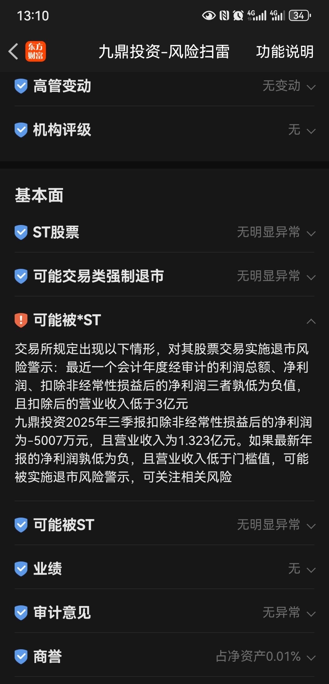 $九鼎投资(SH600053)$ 下跌中继,st预期