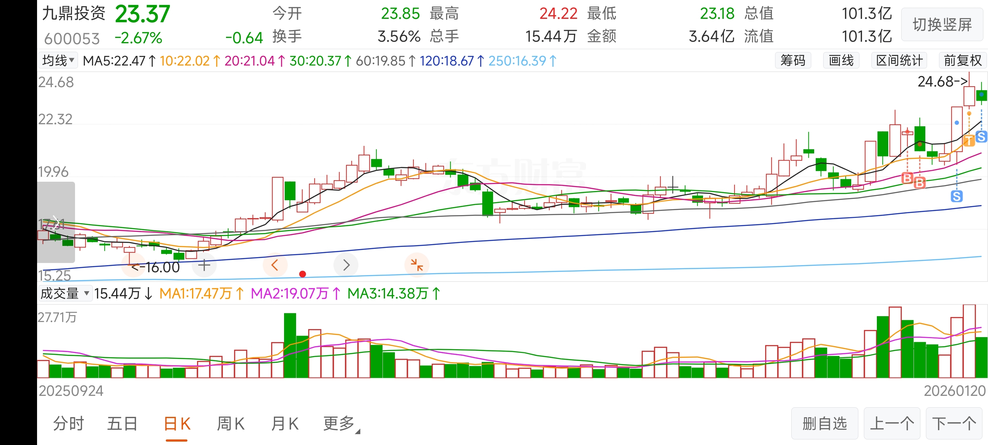 $九鼎投资(SH600053)$ #炒股日记#