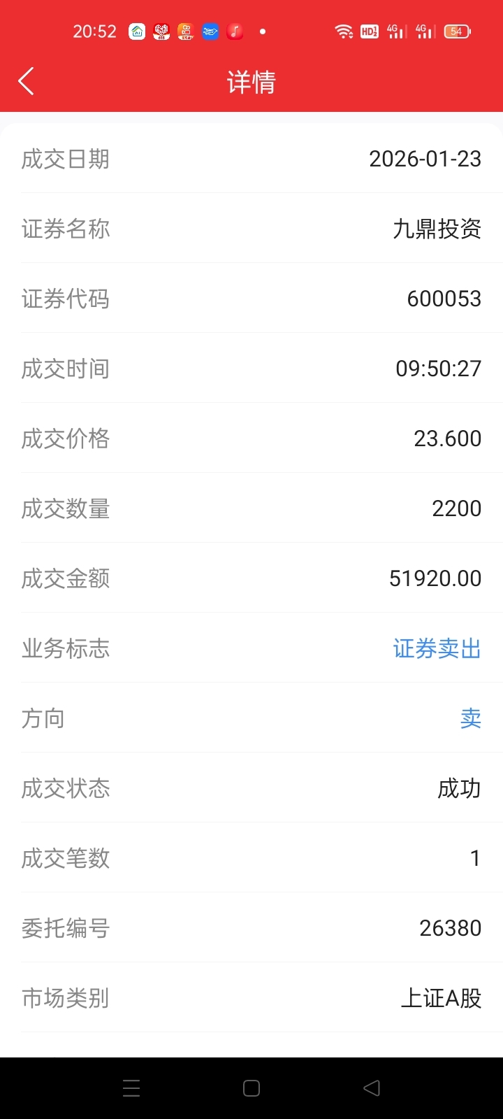 $九鼎投资(SH600053)$ 这票前一天有人推票,23.51尾盘竞价买了2300股,妥妥的杀猪盘,好在只买2300股,看集合竞价不对,挂23.6被动卖出了2200股,留100股看看杀猪盘的套路怎么走的,以后好有对策应对,推票人号码15387723494,大伙要擦亮眼睛别被骗了,如果满仓买进的话,想想都后怕