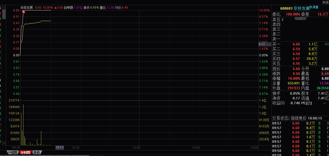 昨天手贱去摸一下九鼎投资。搞得今天竞价上车不了横店影视。只能去打板了京投发展。日