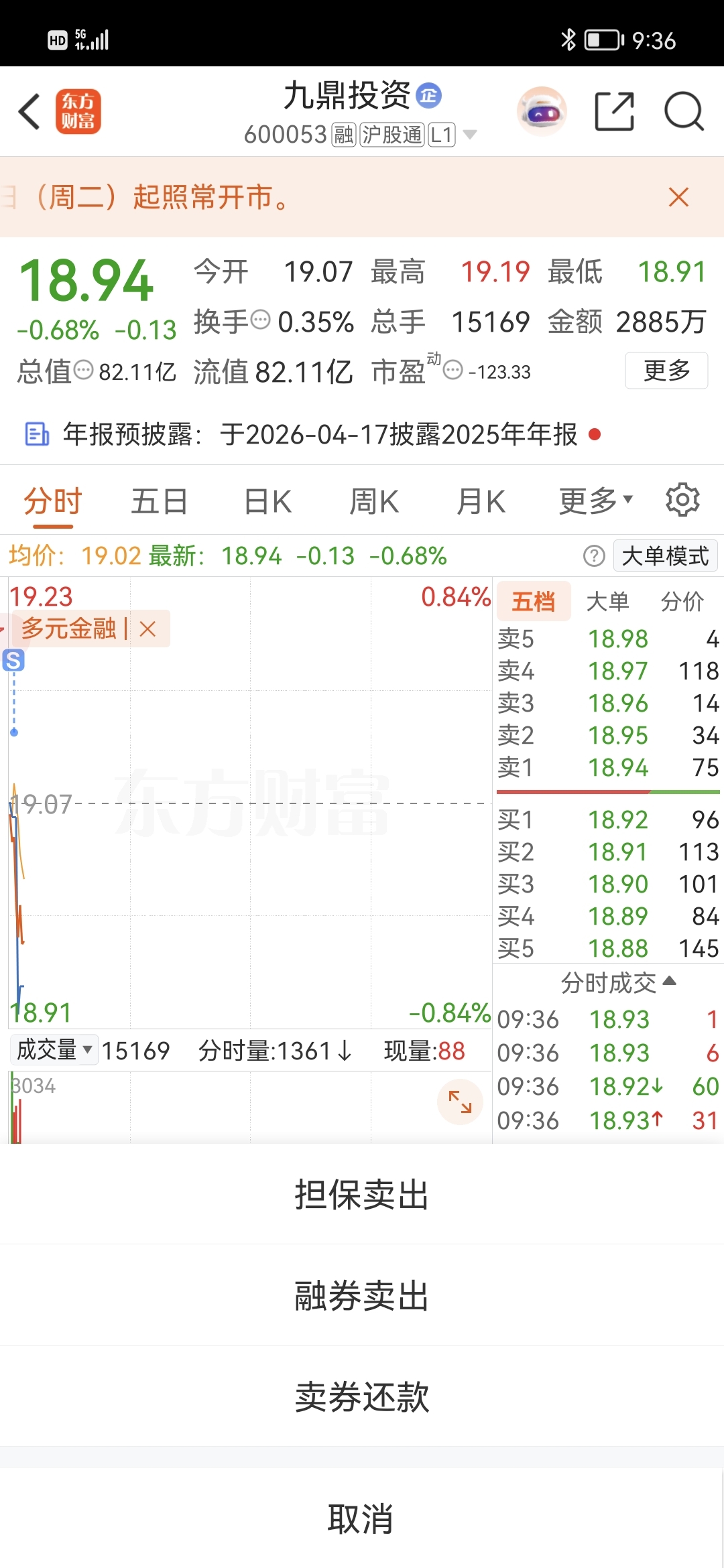$九鼎投资(SH600053)$ 虎口拔牙