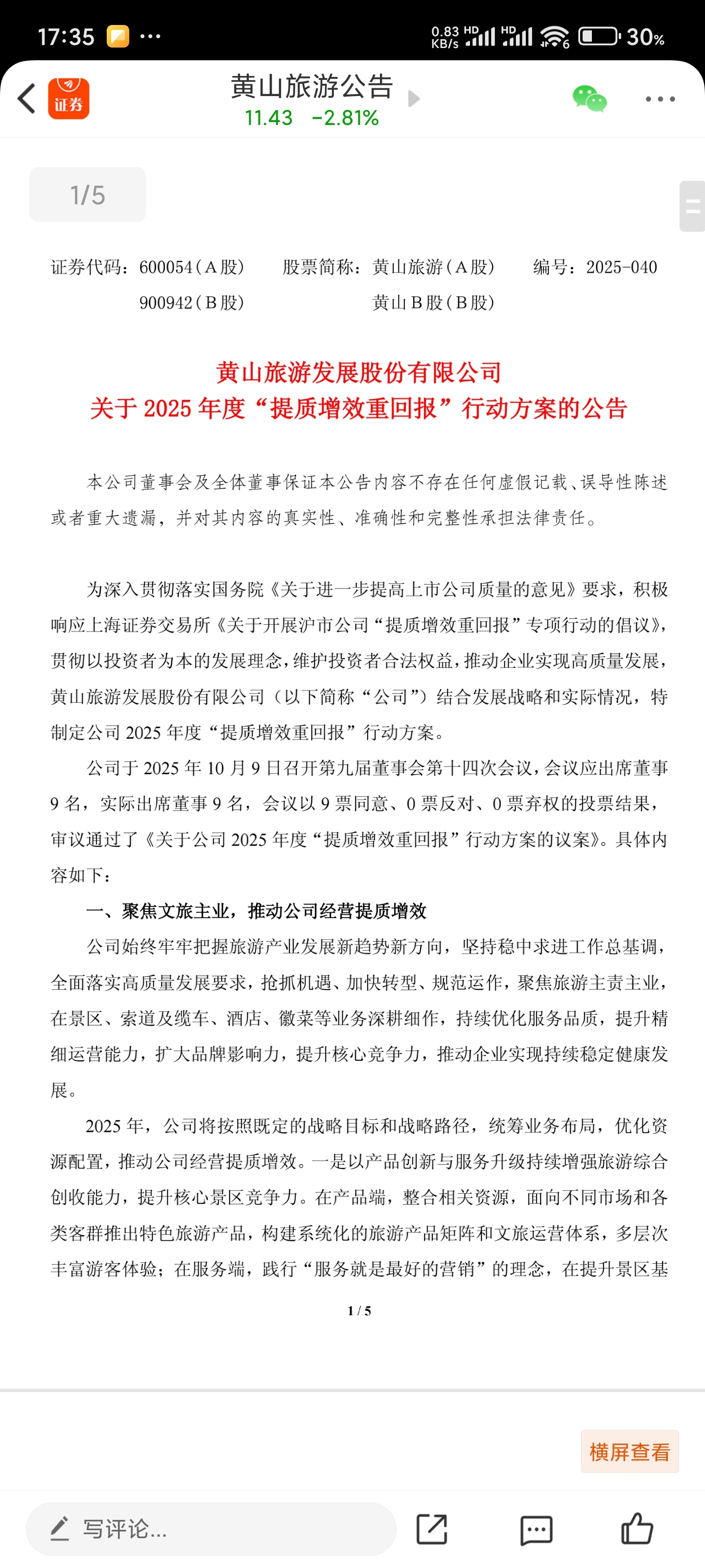 $黄山旅游(SH600054)$ 看看黄山的公告