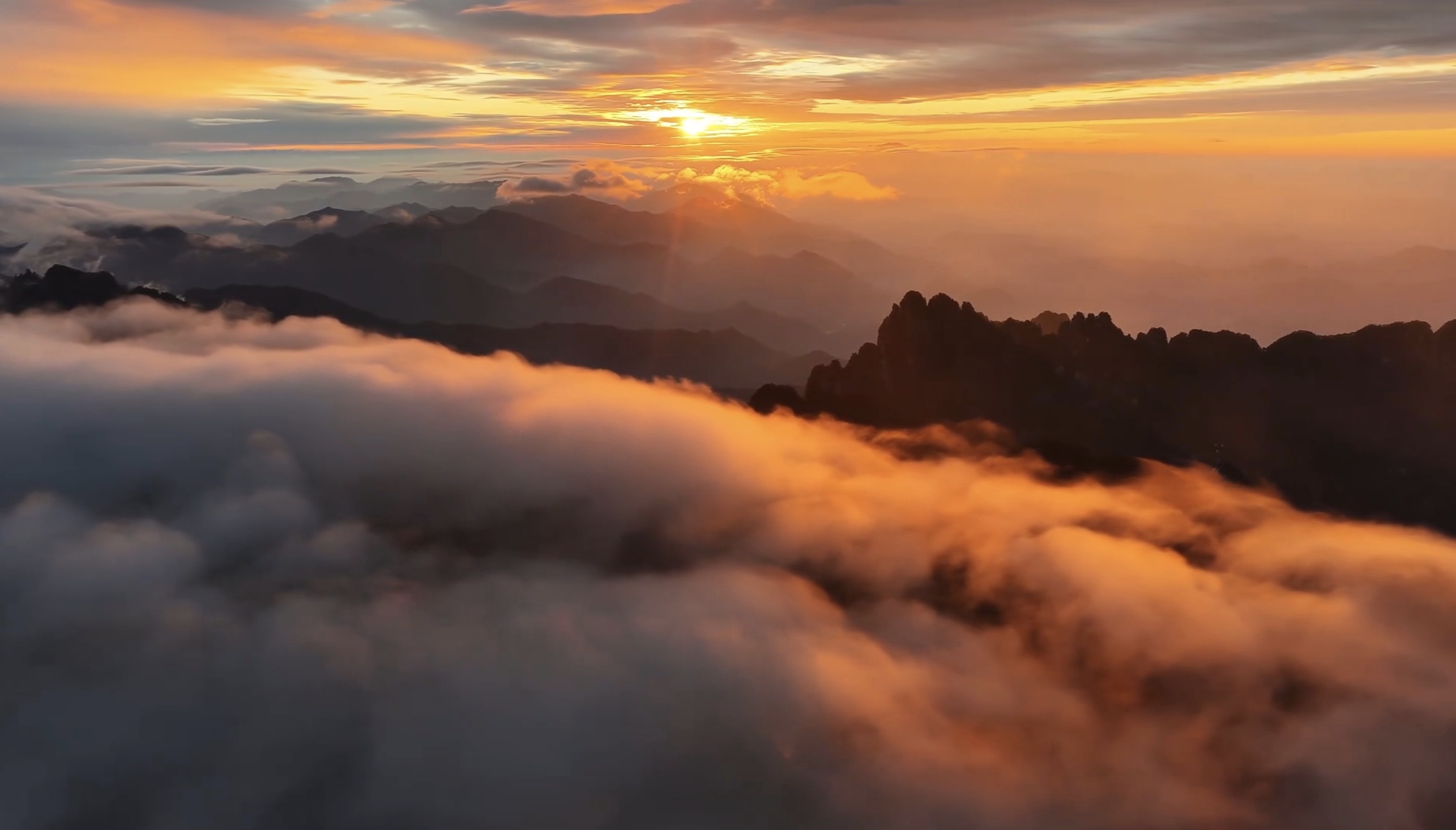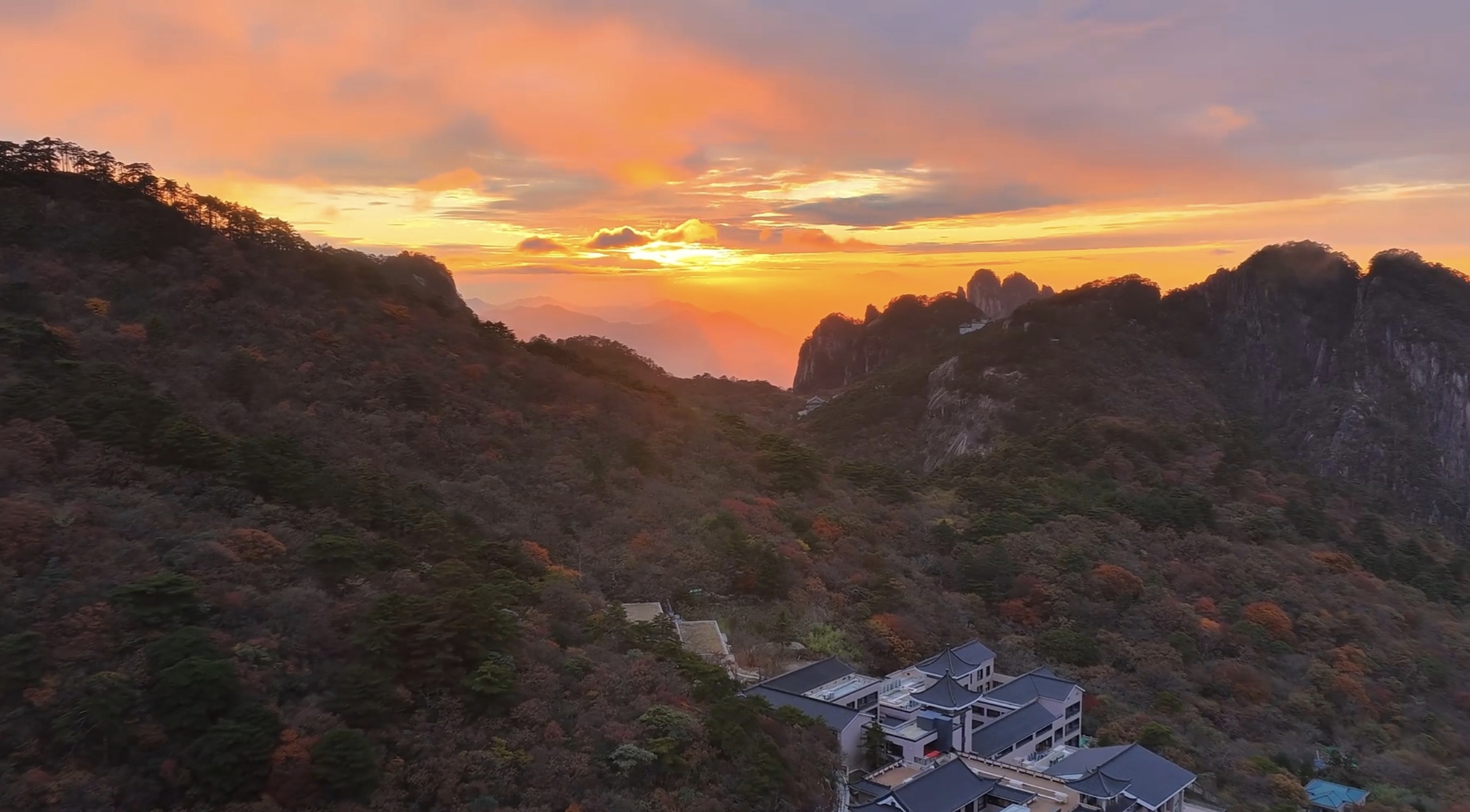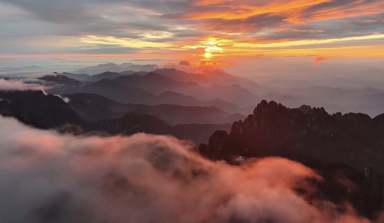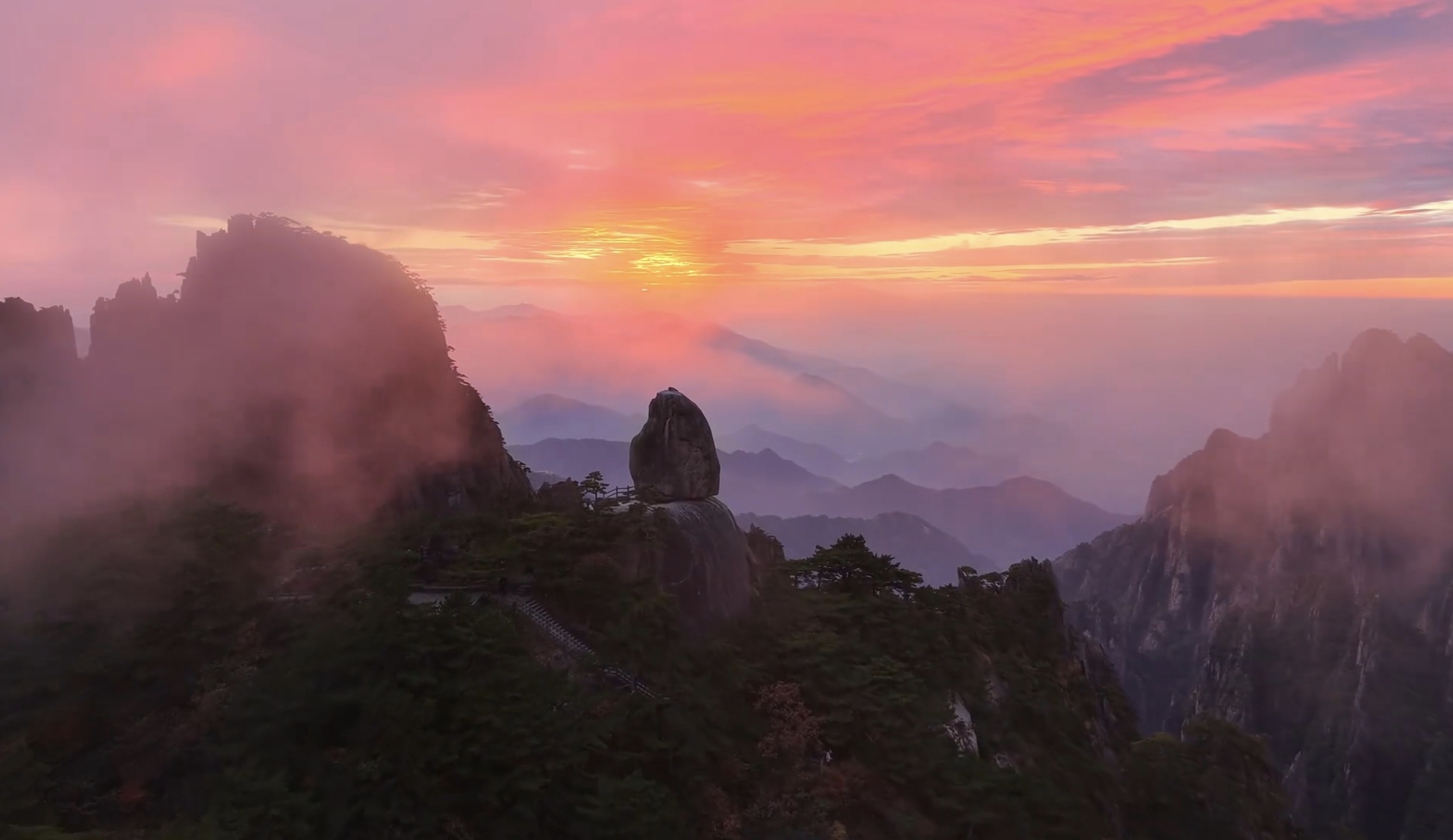 霞染群峰雾锁仙山