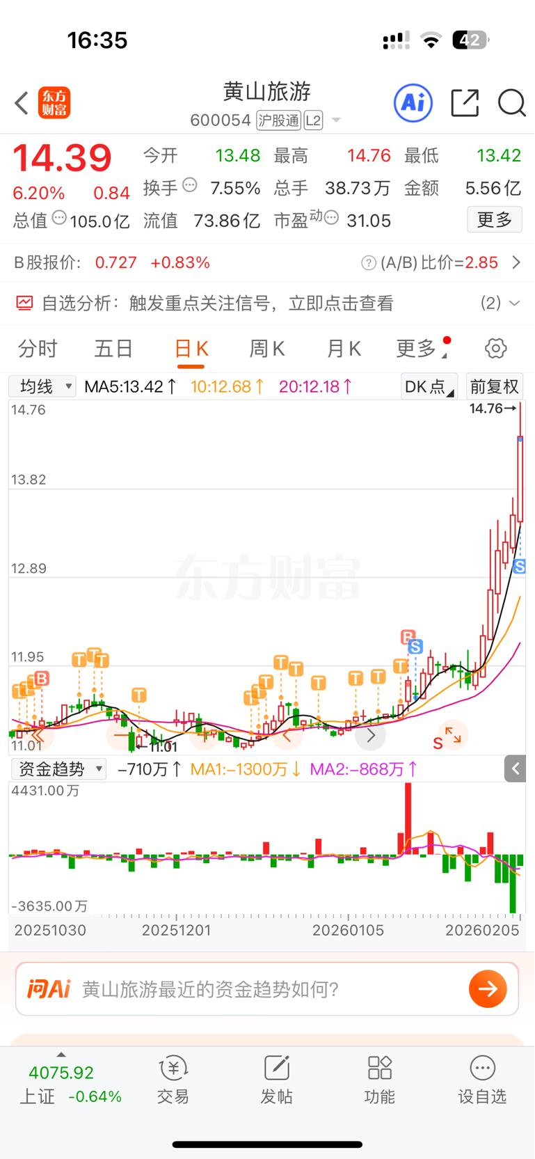 $黄山旅游(SH600054)$ 落袋为安,只赚自己认知范围内的钱。