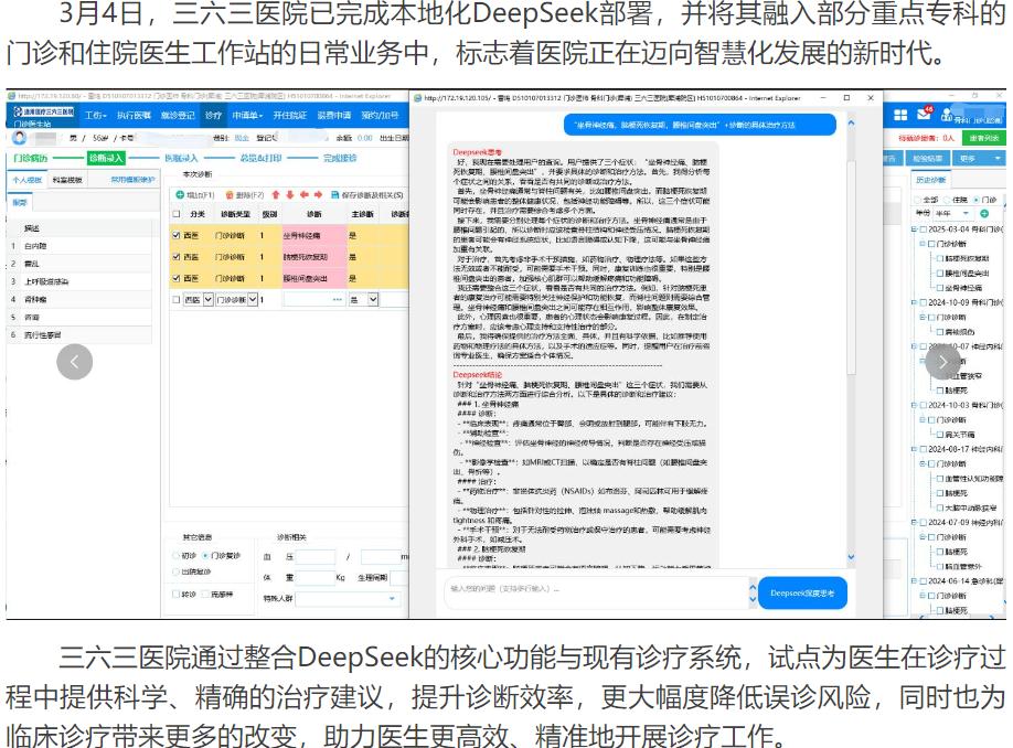 成都一家三甲医院今年3月接入了DeepSeek 来源:医院官网