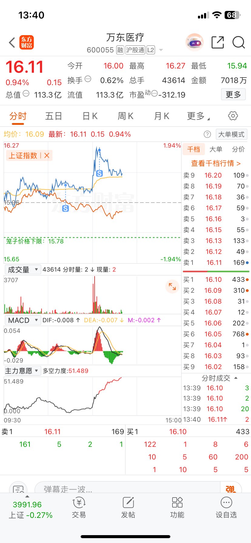 $万东医疗(SH600055)$ 洗了我三百,千万别下来了啊