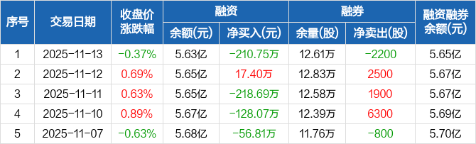 万东医疗:融资净偿还210.75万元,融资余额5.63亿元(11-13)