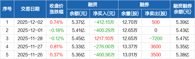 万东医疗:融资净偿还412.15万元,融资余额5.37亿元(12-02)