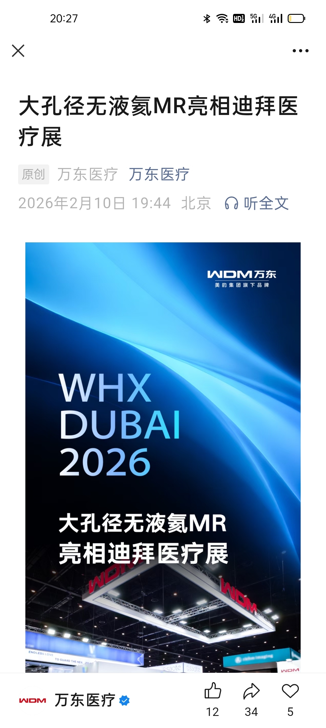 $万东医疗(SH600055)$ 大孔径无液氦MR亮相迪拜医疗
