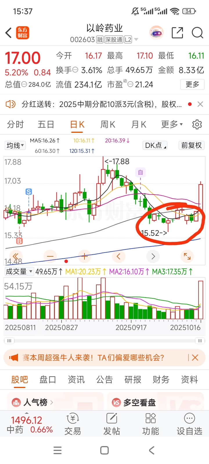 $中国医药(SH600056)$ 以岭砸下来震荡后拉升,你后面是要这样复制,还是又砸盘磨人最后再突然拉。
