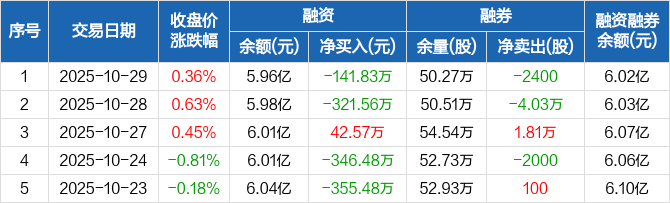 中国医药:融资净偿还141.83万元,融资余额5.96亿元(10-29)