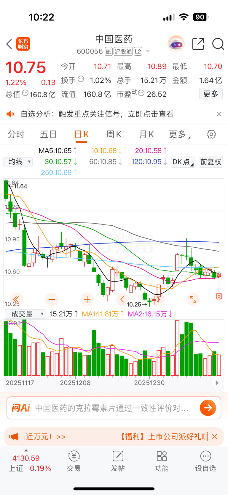 $中国医药(SH600056)$ 这票好像是有点垃圾哈。我昨天进的,看好板块反弹,结果,这货就一点点,搞不好下午板块回落,它能补缺口。。。