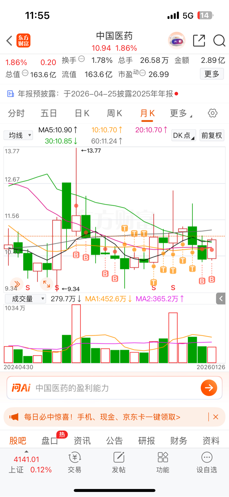 $中国医药(SH600056)$ 被套17个月