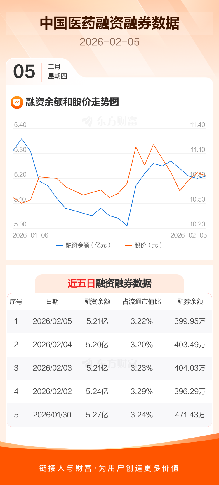 交易所最新数据显示,中国医药于2026年2月5日获融资买入1209.49万元,融资偿还1166.73万元,当日融资净买入42.76万元。目前,该股融资余额5.21亿,占流通市值比例为3.22%。