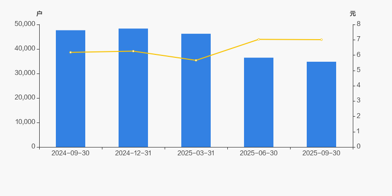 自2024年12月31日以来,公司股东户数连续3期下降,截至目前减幅为28.00%。2024年12月31日至2025年9月30日区间股价上涨12.00%。