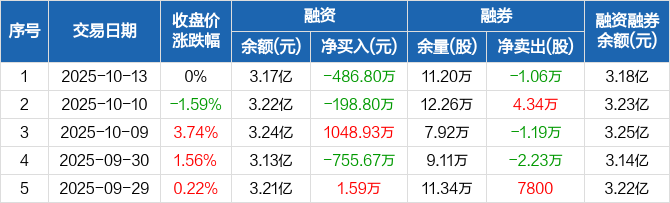 五矿发展:融资净偿还486.8万元,融资余额3.17亿元(10-13)
