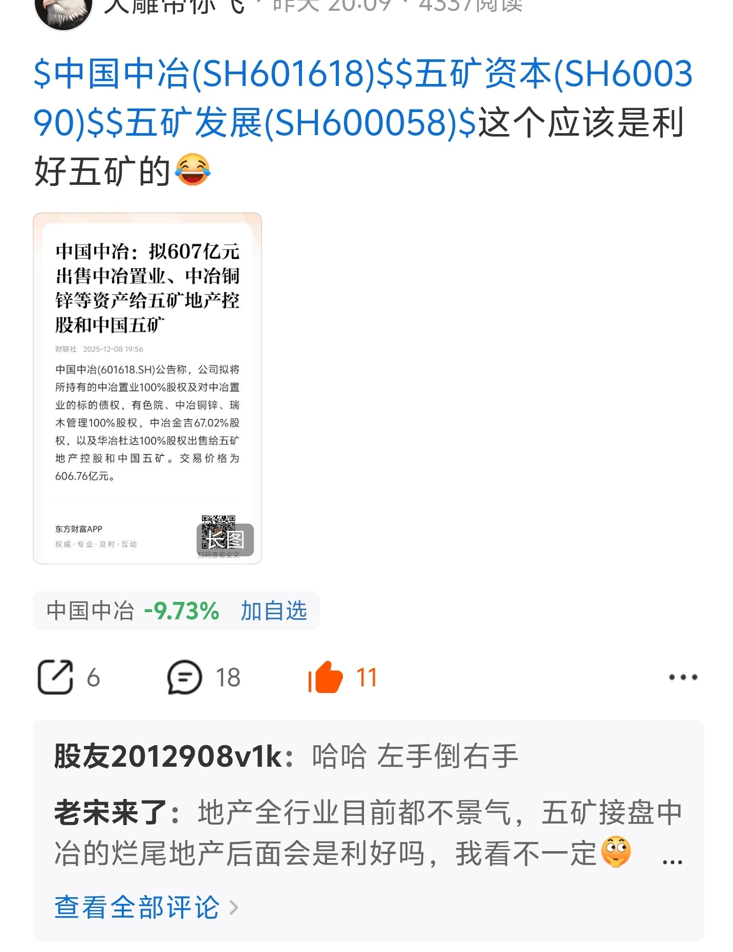 $五矿发展(SH600058)$ $合富中国(SH603122)$ $航天发展(SZ000547)$ 恭喜买了五矿的