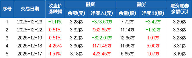 五矿发展:融资净偿还373.6万元,融资余额3.28亿元(12-23)