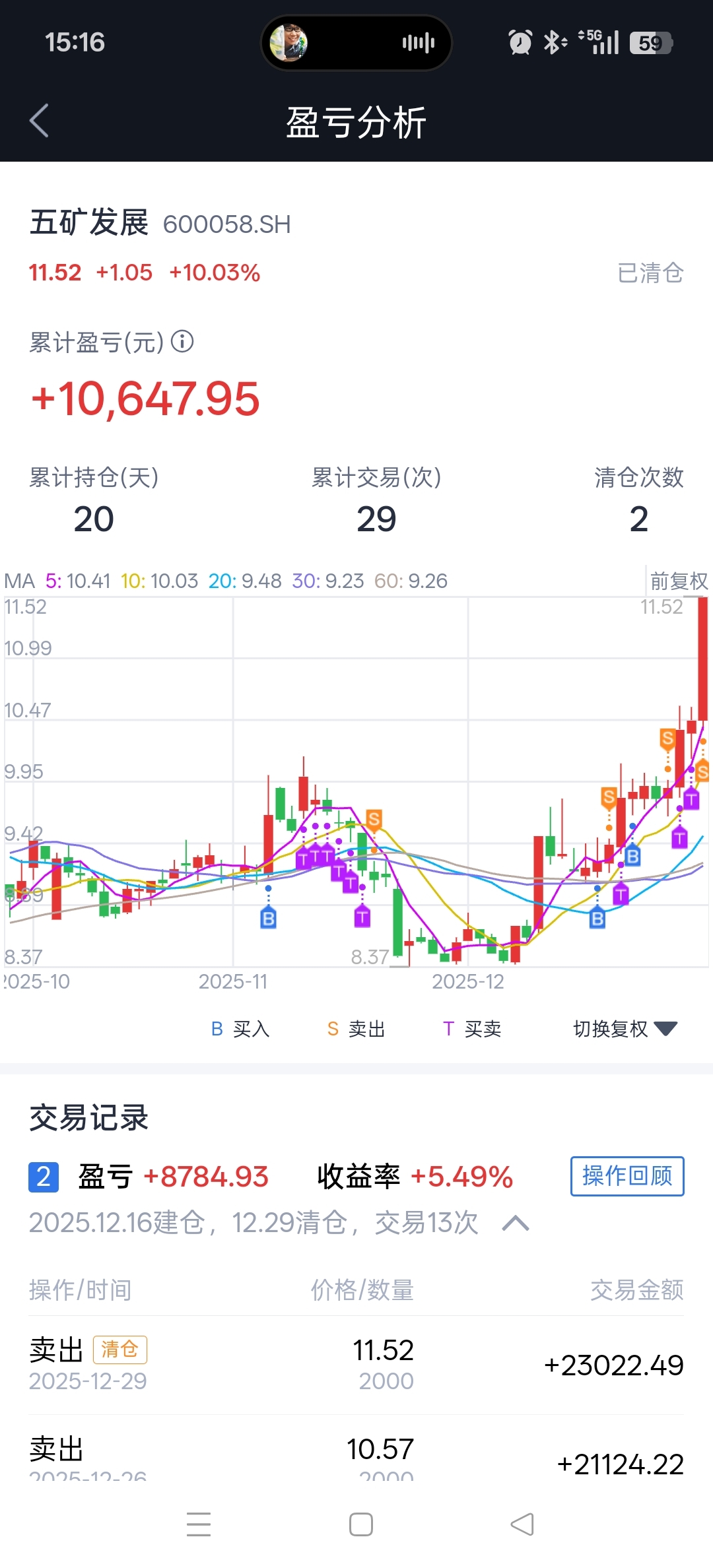感谢五矿,也是把底仓也清了,有机会再来,祝兄弟们一路长虹