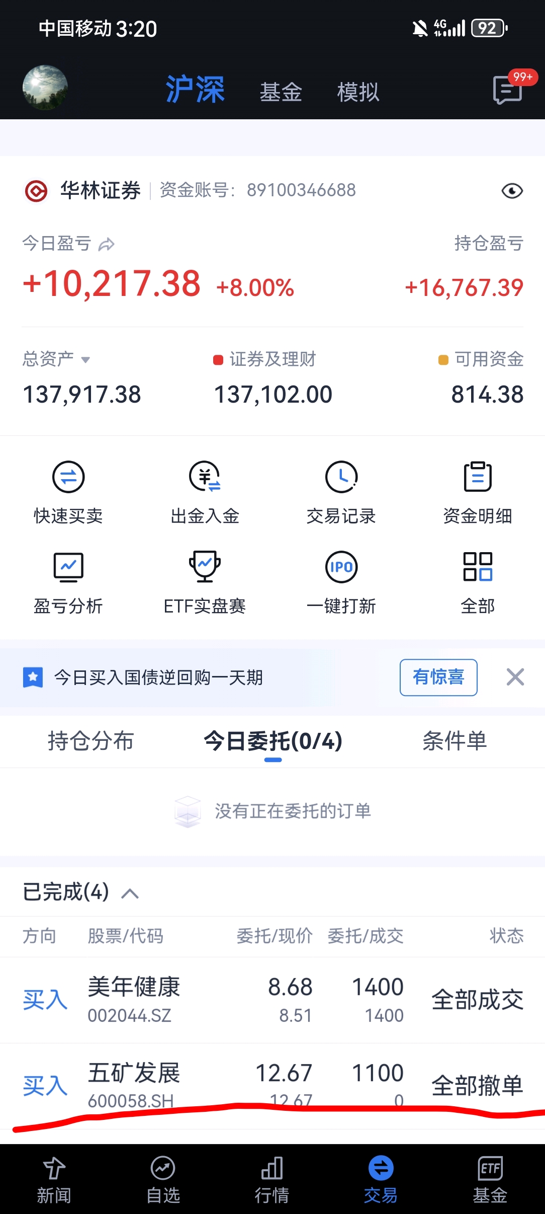 昨天那个封单量卖了,咋天想买回来买不进了,服了,受不了一点,今天出去又吃面,美年
