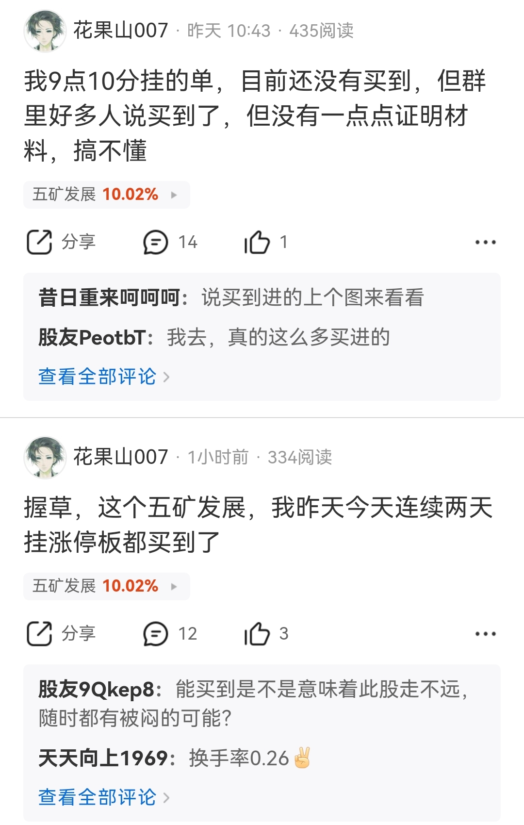 $五矿发展(SH600058)$ 这个花果山昨天说没买到五矿,今天又说昨天买到了,啥情况