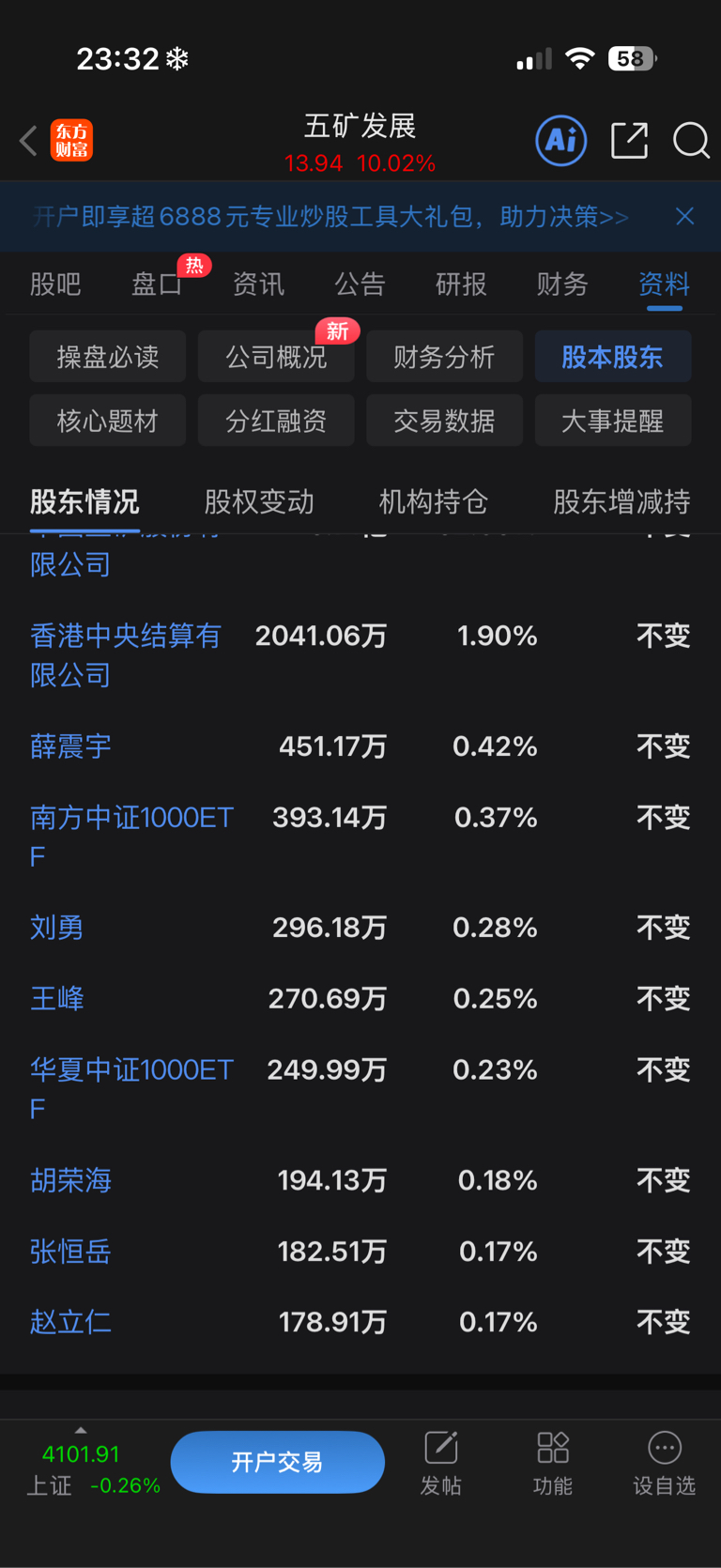 $五矿发展(SH600058)$