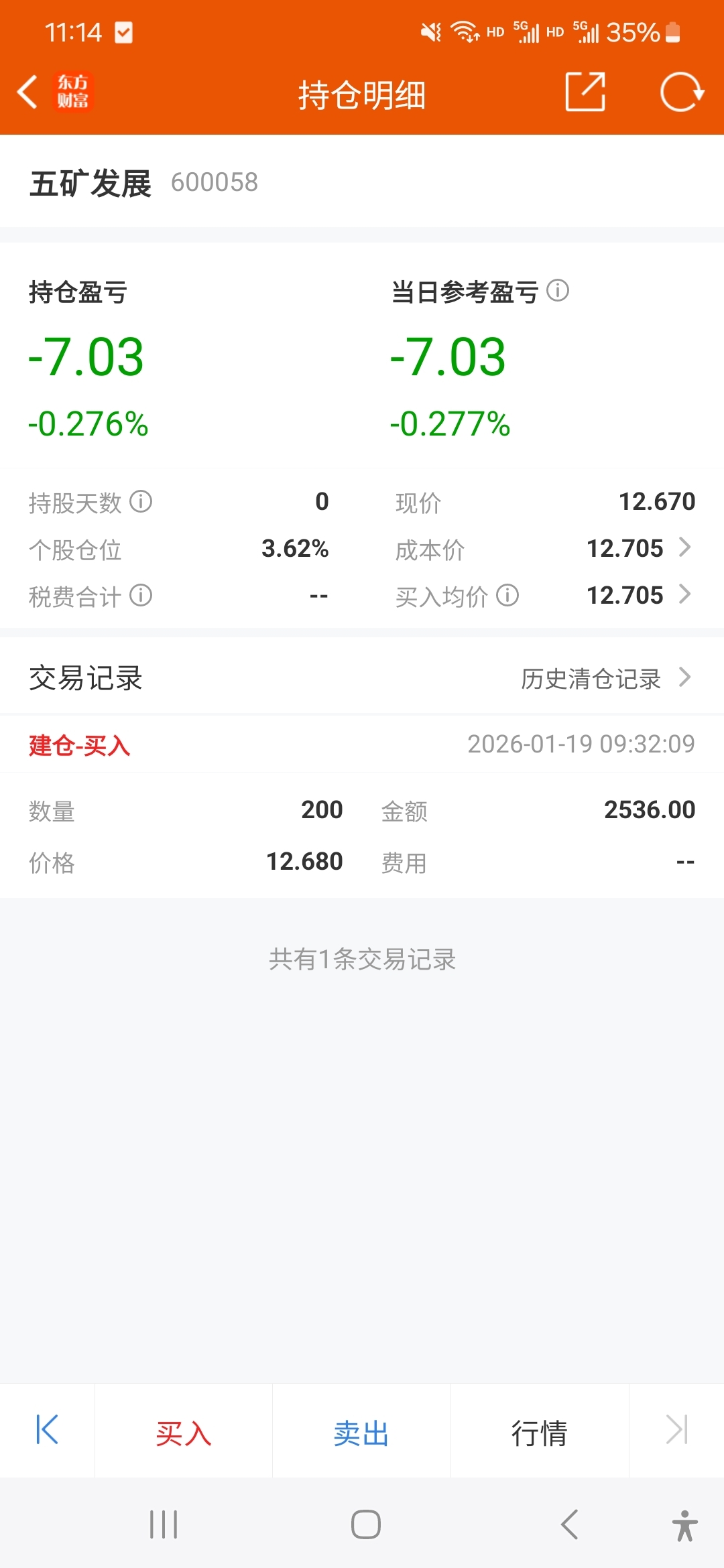 $五矿发展(SH600058)$ 全仓抄底了,希望明天别埋我
