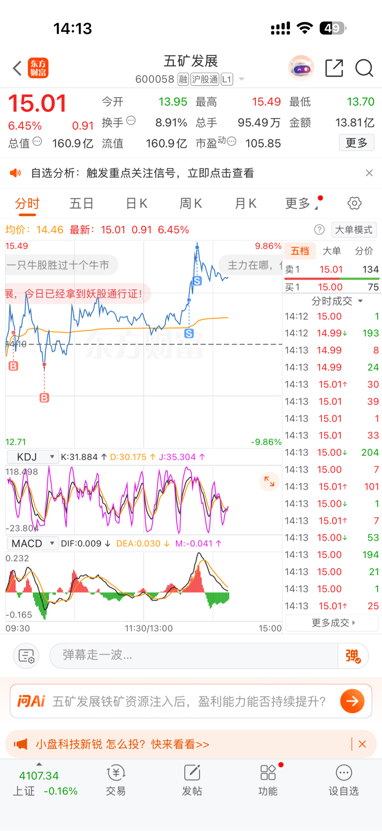 $五矿发展(SH600058)$ 锁底仓,就是T着玩,还是T飞了