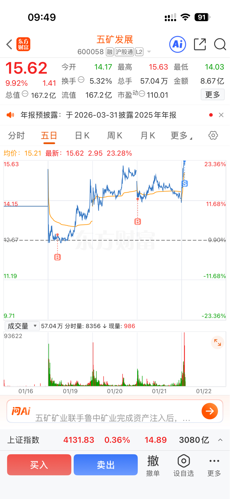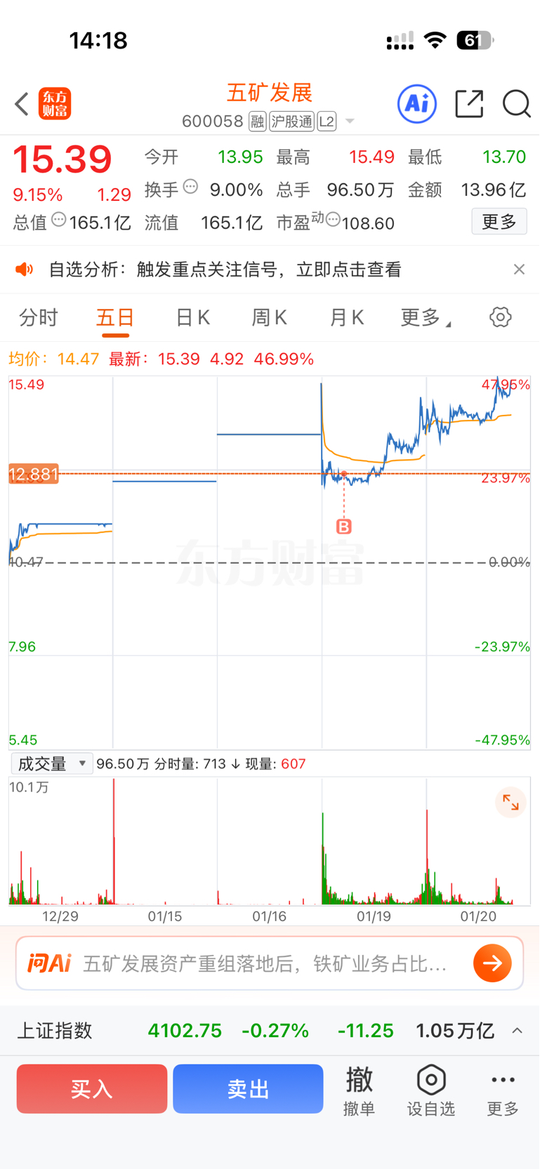 $五矿发展(SH600058)$ 问题不大,今天第二个涨停吧