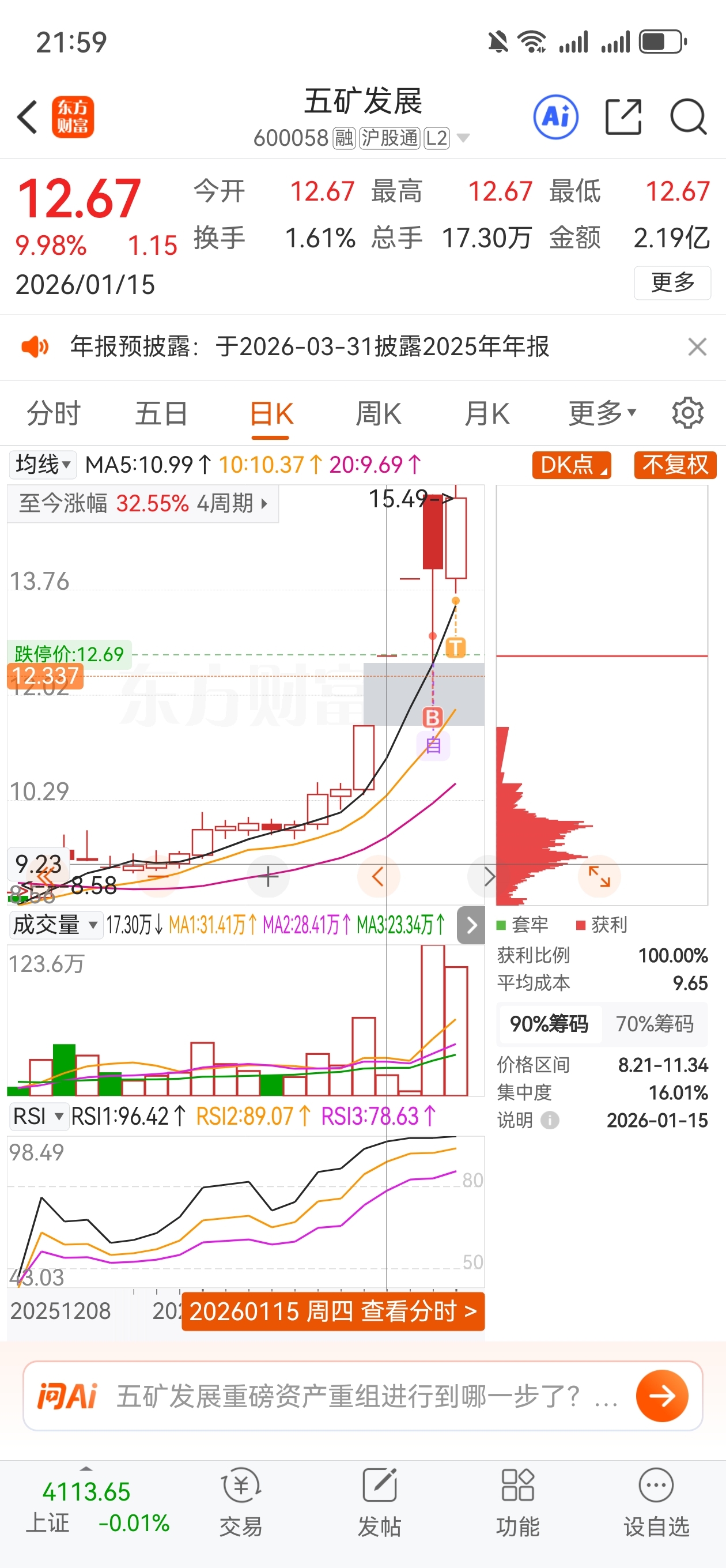 $五矿发展(SH600058)$ 明天不是一字板我都觉得你弱
